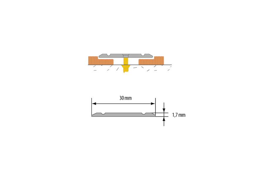Alu Übergangsprofil 30mm Cezar L= 0,90m Silver (mitte gebohrt)